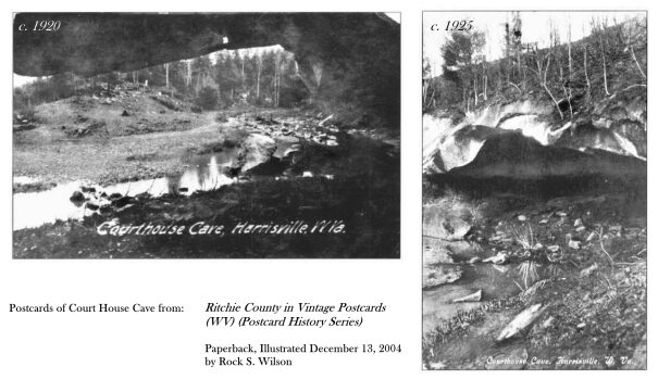 Group member, Nancy Mosley, responded with a couple pics. ”In looking at the book ‘Ritchie County in Vintage Postcards’ by Rock S. Wilson, I discovered that there are 2 pictures of Court House Cave on page 42, from around 1925. The book is a gold mine of pictures…I keep forgetting that I have it, then find wonderful things when I look at it again.”