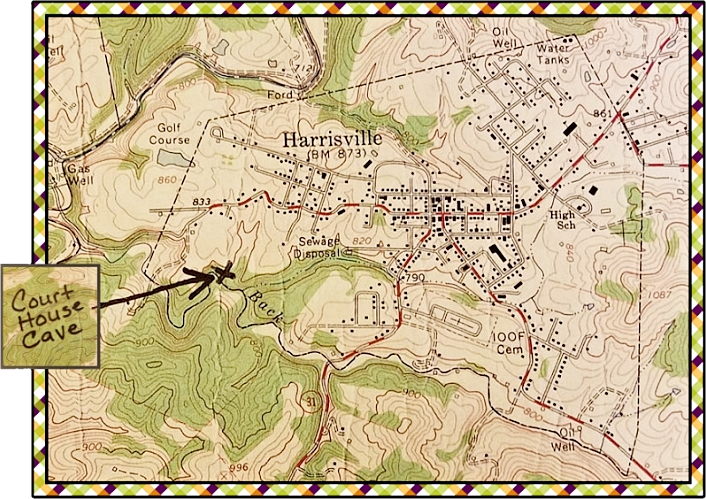 Susan J Scott passed along this map from her husband, depicting where Court House Cave is located. (Note, map has been slightly modified from the original submission.)