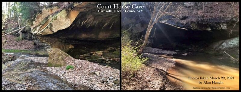 Court House Cave – seemingly a popular hangout for the young people of Harrisville – was mentioned several times in the letters, but I could not find it on any map. I turned to my fellow genealogists and history buffs at the Ritchie County, West Virginia History and Genealogy group on Facebook for help. Surprisingly, several people in the group who had lived in Harrisville for many years – some even their entire lives – said they had no idea where the so-called cave was located.