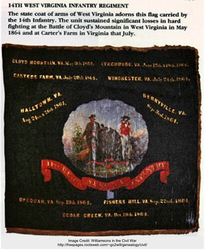 The Fourteenth West Virginia Volunteer Infantry Regiment was comprised of ten companies of Union men whose home counties included Doddridge, Marion, Monongalia, Ohio, Pleasants, Preston, Ritchie, Tyler, and Wood.