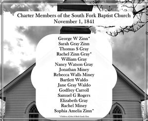 As I came to find out, the church officially organized in 1841. And from that date to the present, there have always been descendants of the Zinn family numbered among the active members! They gathered at various locations over the years, but there were three buildings titled “South Fork Baptist Church.” That is according to The South Fork Baptist Church - A History - August 1979, written by Mildred Wilson Rule. What follows are notes taken from her transcriptions of the church’s records and additional notes from Brad Spiker. (Links to both writings are provided under Sources below.