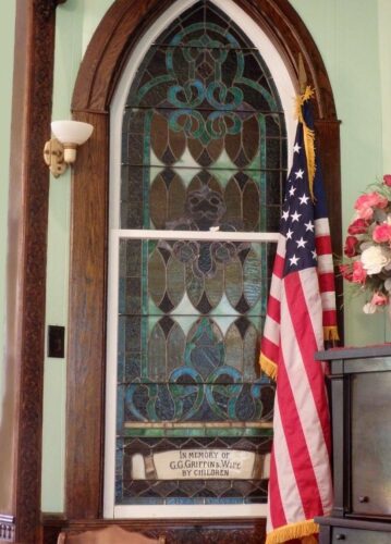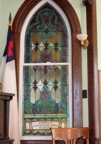 The H.B. Tharp shown on the memorial window is most likely Grant’s grandfather, Hezekiah Benjamin Tharp.