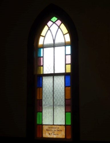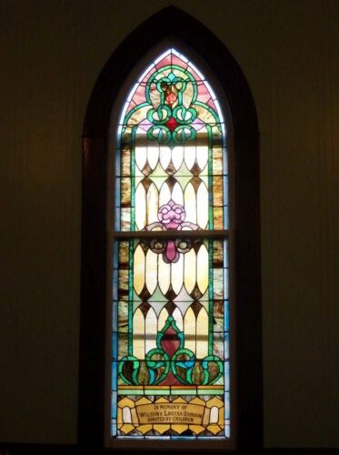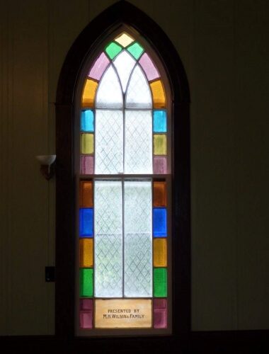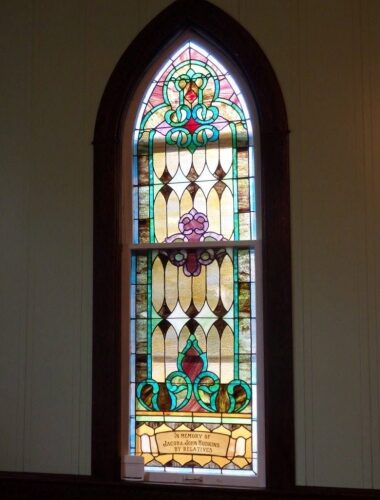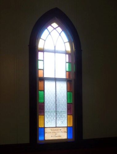 I haven’t been successful in finding anyone still living that knows the entire history of the 12 windows. (If you’re out there, please contact me.) I cannot say with certainty that all of these are original to the building when it was constructed. I cannot tell you whether any of them were repaired over the years. What I can tell you is written below, next to a photo of each memorial window. I am hoping this will start a conversation to shed more light on another part of our family history that we are at risk of forgetting.