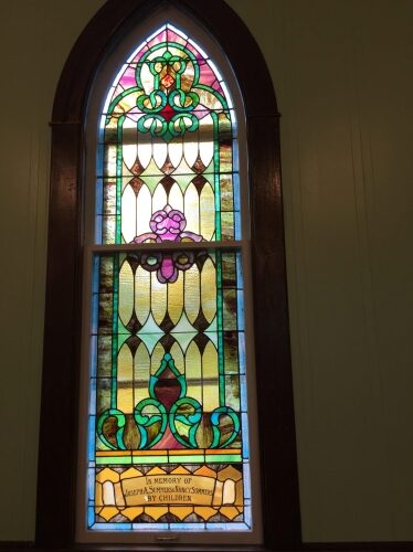 Entering the South Fork Baptist Church on a sunny day is like stepping into a rainbow. Shafts of sunlight passing through the stained glass windows reflect off every surface in pretty shades of reds, greens and blues. As a child, I noticed only the pretty colors. As an adult, I also notice the names of those memorialized on each window.