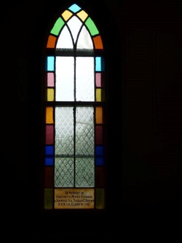 The names on this memorial window are unfamiliar to me but may be this father and son that are buried in our cemetery.